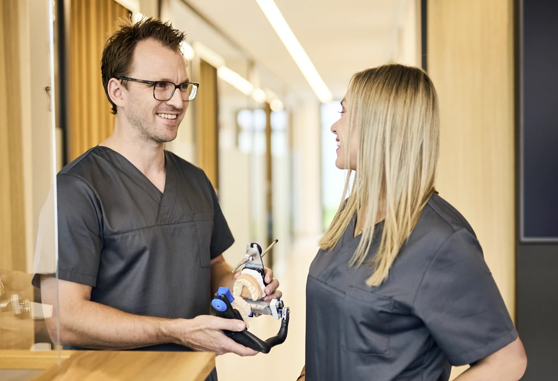 Für uns ist ganz entscheidend, in einer Umgebung zu arbeiten, in der sich alle wohlfühlen: Sie als unser Patient und wir als eingespieltes Team. Freuen Sie sich auf eine ruhige Atmosphäre, in der es wertschätzend, respektvoll und menschlich zugeht. Werte des Vertrauens – so können wir es zusammenfassen.